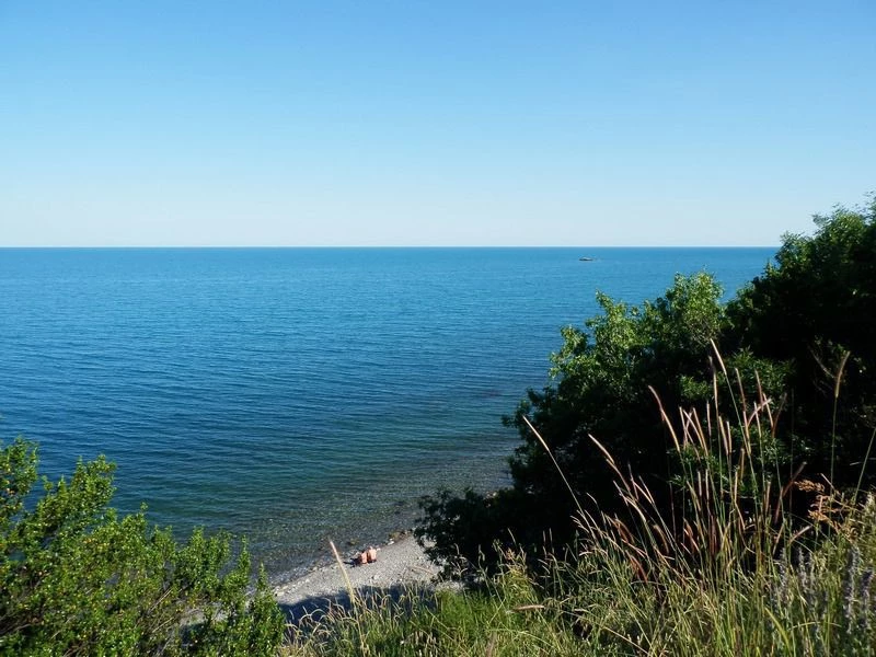 - Пляж песчано-галечный: Хорошие пляжи имеются только вблизи устьев рек, где накапливается обильный аллювий. Поэтому местами галечные пляжи замещаются гравийно-песчаными.